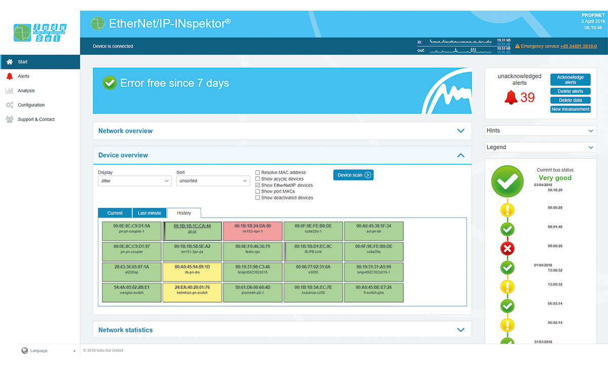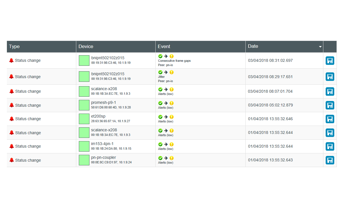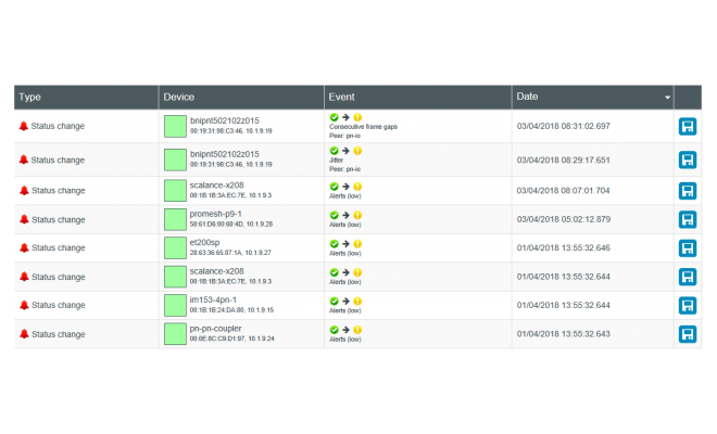 Önceden tanımlanmış tetik fonksiyonlarına bağlı olarak, olaylar EtherNet / IP-INspektor ® ‘dakaydedilir ve cihaz başına toplanır ve saklanır. Böylelikle INspektor ® , iletişim kalitesinin mevcut durumunu yansıtan ağ yükü, veri çıkışı, yenileme hızı, telgraf boşlukları ve telgraf jitter gibi kalite değerlerini tespit eder. Bu parametreler yeni tesisler için işletmeye alma ve inceleme kriterleri olarak kullanılır, aynı zamanda bakım ve (uzaktan) servis için de önemli bilgilerdir.