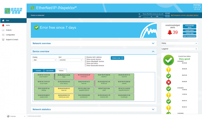 Ethernet / IP-Inspektor ® devreye alma ve yeni yüklenen Ethernet / IP ağlarının sertifikalandırma için önemli bir tanı aracıdır.