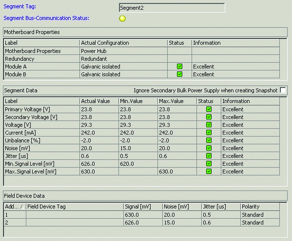 Düğmeye dokunduğunuzda mobil el cihazı cihazı devreye almadan önce segmentleri kontrol eder ve kurulumdaki tüm arızaların yerlerini gösterir. Ayrıca, mevcut altyapı kablolarının bir fieldbus kurulumu için kullanılıp kullanılamayacağını da kontrol eder