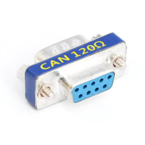 Bu CAN veri yolu sonlandırma direnci, bir D-sub 9 pimli erkek konektör ve dişi sokettir. CAN High / CAN Low pinleri arasında 120 Ohm’luk bir terminal direnci içerir.