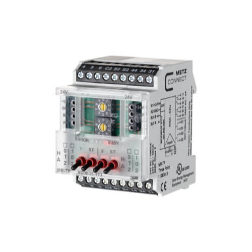 6 dijital giriş, 2 iki seviyeli röle çıkışı ve 2 dijital çıkış içeren Modbus üç nokta modülü, merkezi olmayan anahtarlama görevleri için geliştirilmiştir. Örneğin, çok seviyeli pompaları ve fanları veya panjurları değiştirmek için uygundur. Bu durumda, yüke bağlı uygun önlemlerle röle kontaklarını korumak gerekir. Girişler ve çıkışlar, bir Modbus master aracılığıyla standart kayıtlar aracılığıyla anahtarlanabilir ve taranabilir. 1 ila 6 arasındaki giriş terminalleri, potansiyelsiz anahtarlara veya kontaklara iki kutuplu C2 terminalleriyle kablolanmıştır. Modül, çıkışlar için manuel kontrole sahiptir. Modül adresi, bit hızı ve parite, ön taraftaki iki döner anahtarla veya yazılımla ayarlanır. Elektrik dağıtım panolarında IEC 60715’e göre DIN TH35 rayına merkezi olmayan montaj için uygundur.